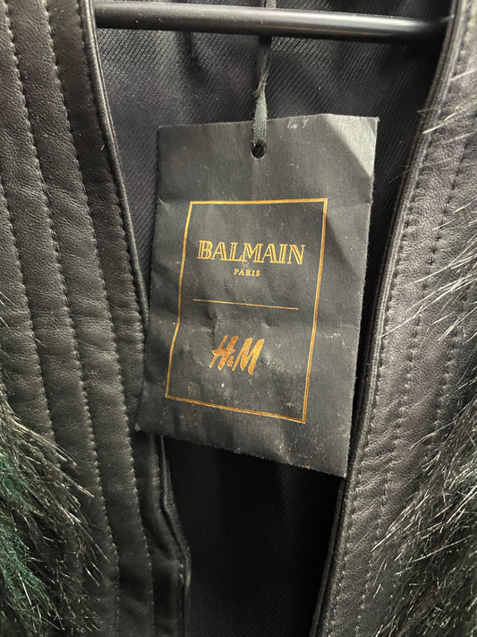 NWT Balmain x H&M Green and Black Faux Fur Jacket