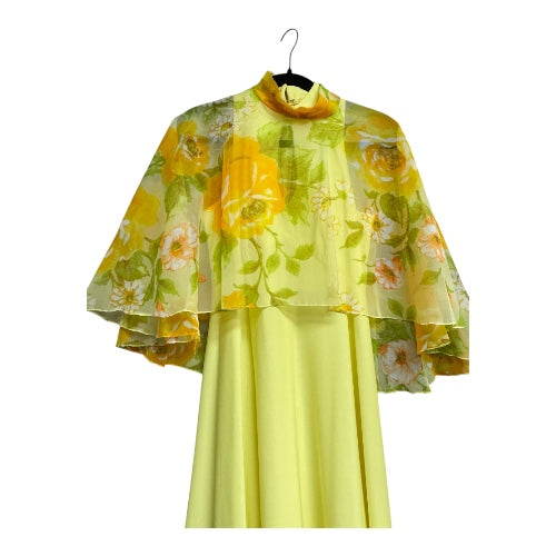 Fabulous Vintage Yellow Dress with Floral Cape, size s