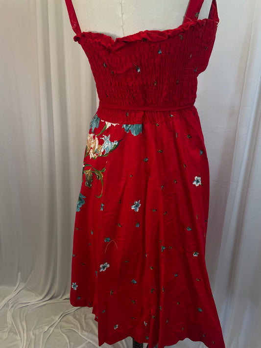 Vintage 70s Red Hawaiian Print Sundress, sz S
