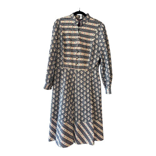 60’s Vintage Navy Blue Wool Dress with Neon Stripe Detail, size xs