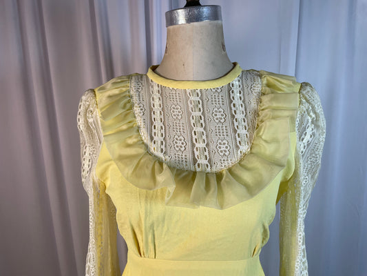 Vintage 70s Yellow Prairie-style Dress, size medium