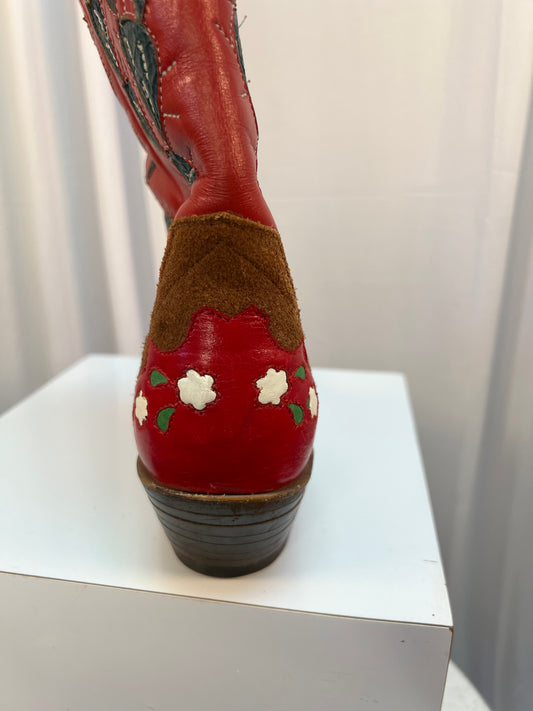 Red Western Boots With Green Cactus Design by Santa Fe Boot Co.