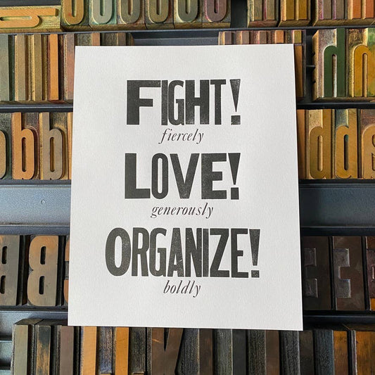 PRE-ORDER — Letterpress print: Fight! Love! Organize!