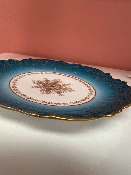 Limoges France Blue and Gold Trinket Dish