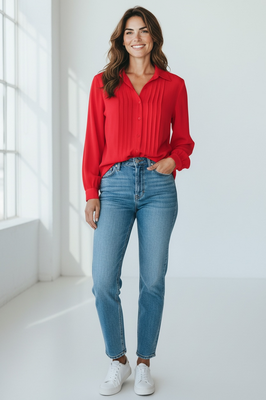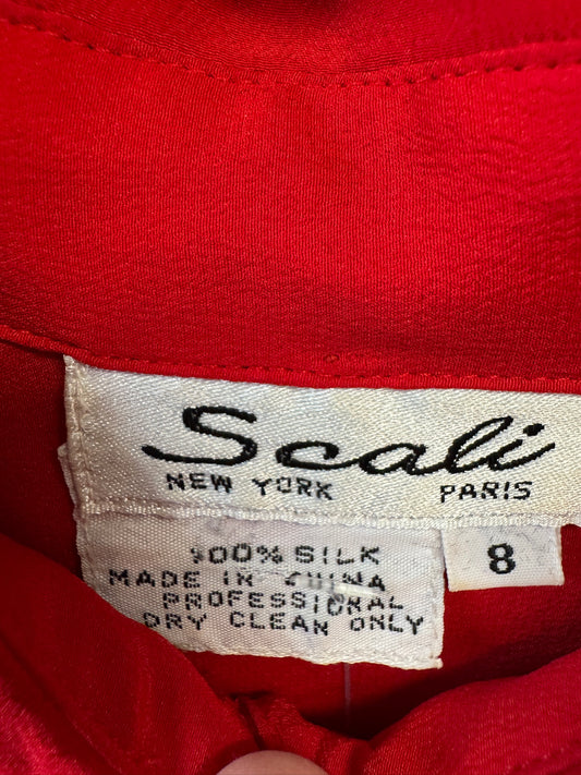 Vintage 100% Silk, Scali New York-Paris, Red Blouse, size 8