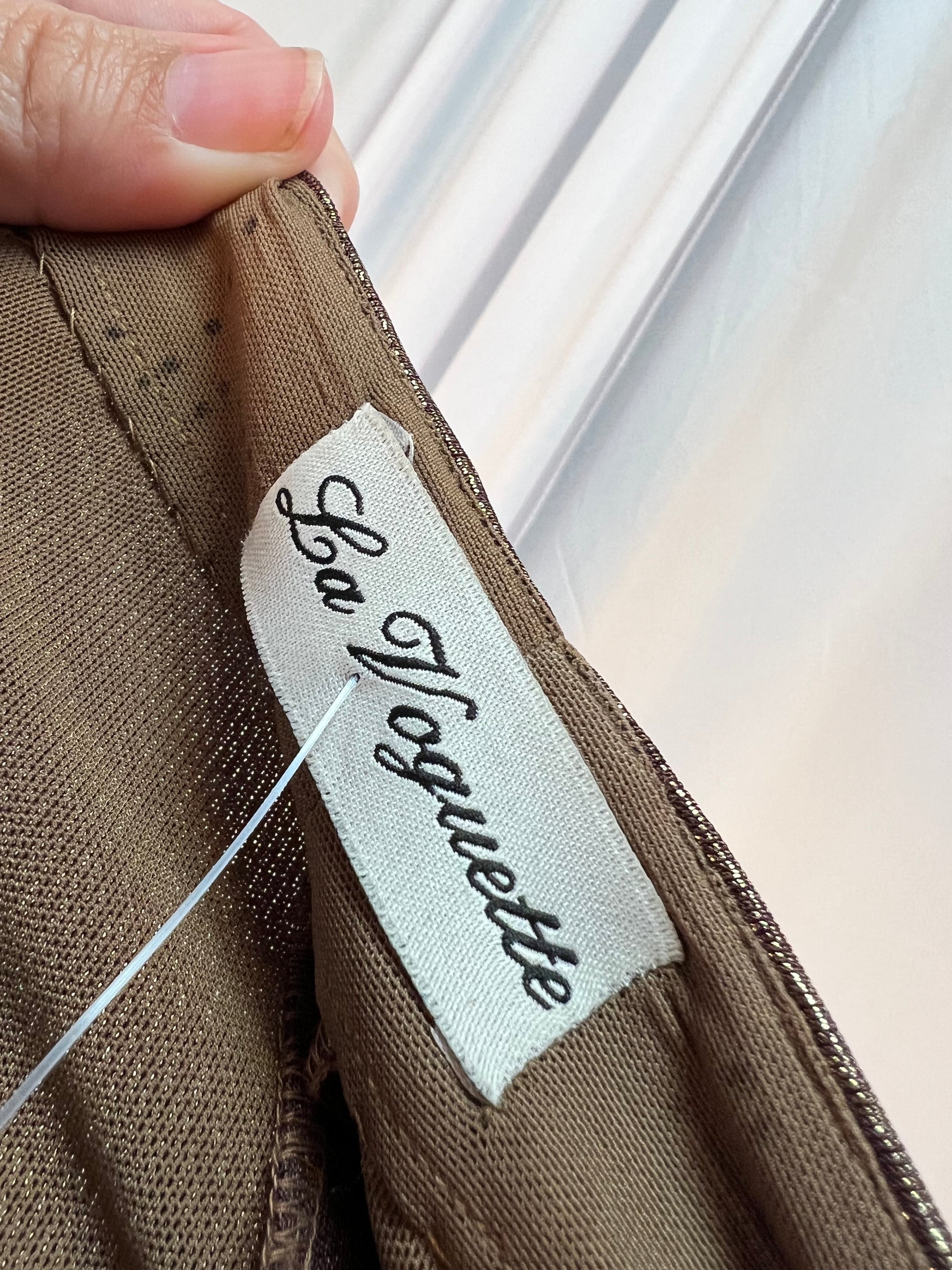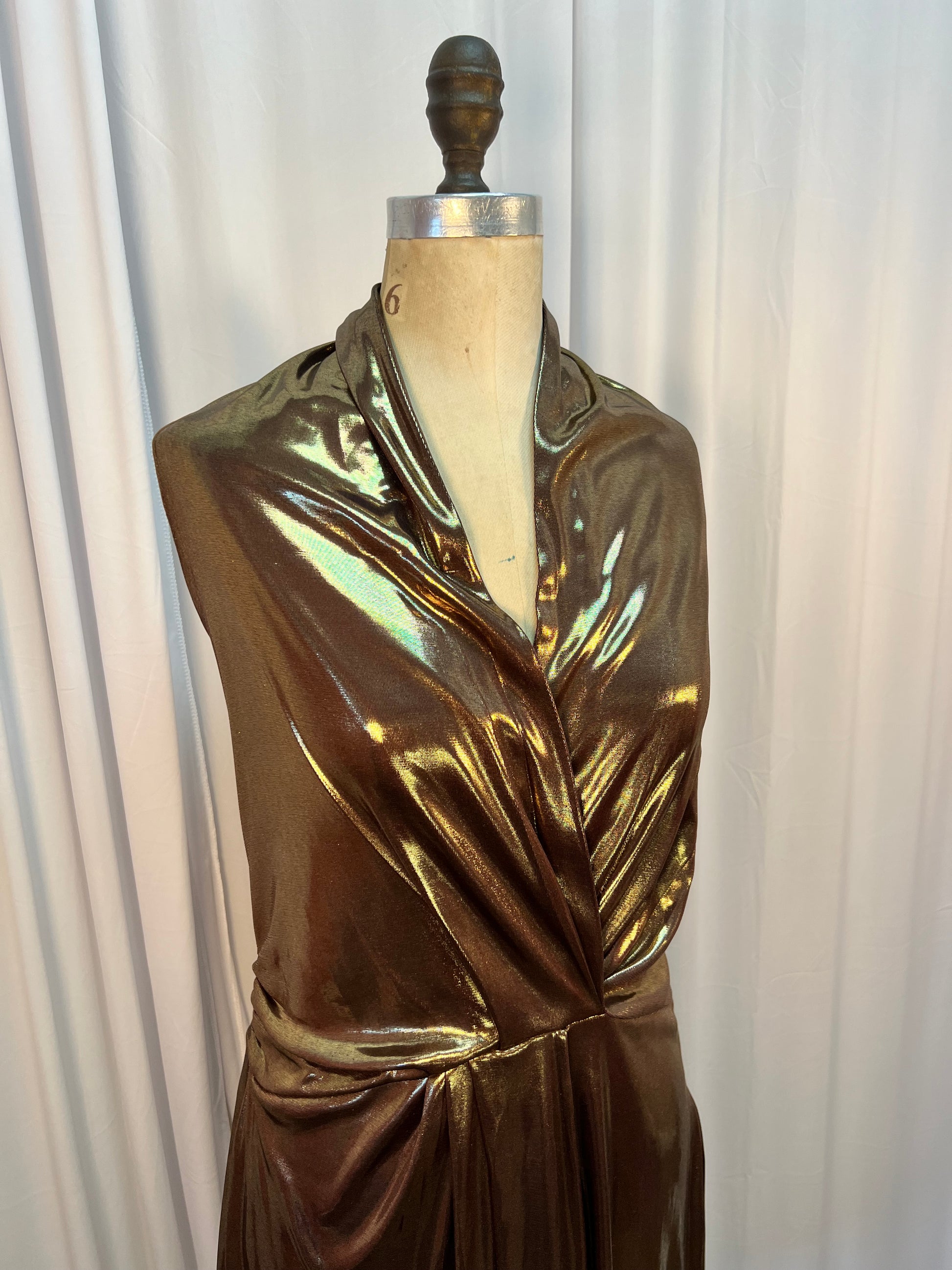 This dress is truly spectacular. Super sexy, disco-era gold halter dress in fantastic condition. It drapes beautifully in the front and around the hips, making it the perfect dress for dancing the night away. Going to a Studio 54-themed party? Great, this will look amazing! But it's not costume-y at all, and would look equally hot out on the town. I'm sure this dress has some really good stories to tell :)