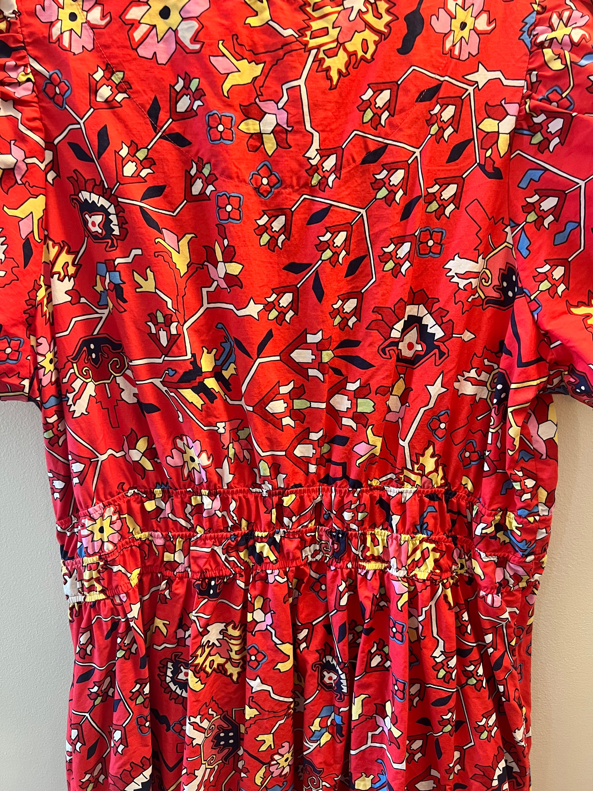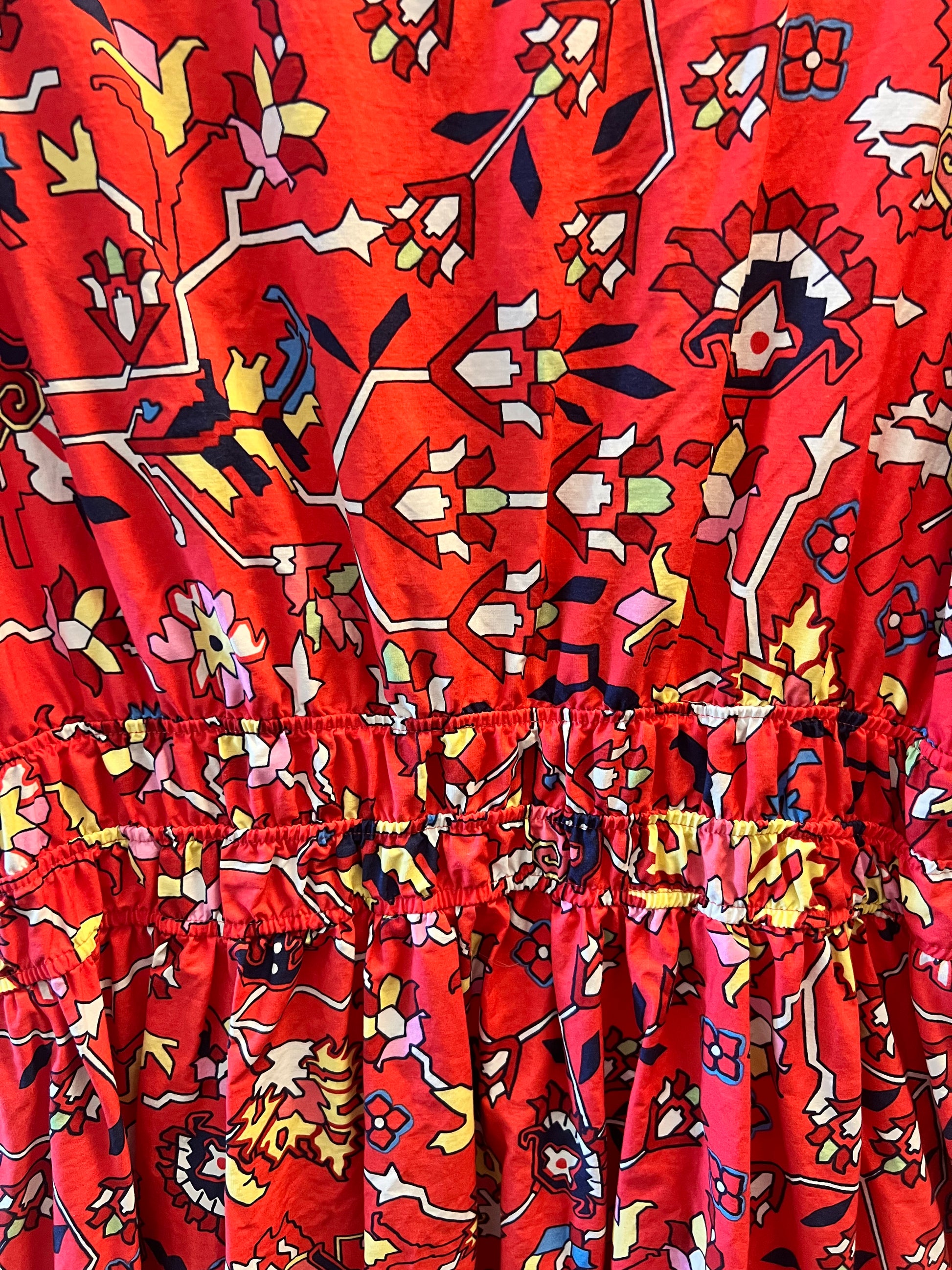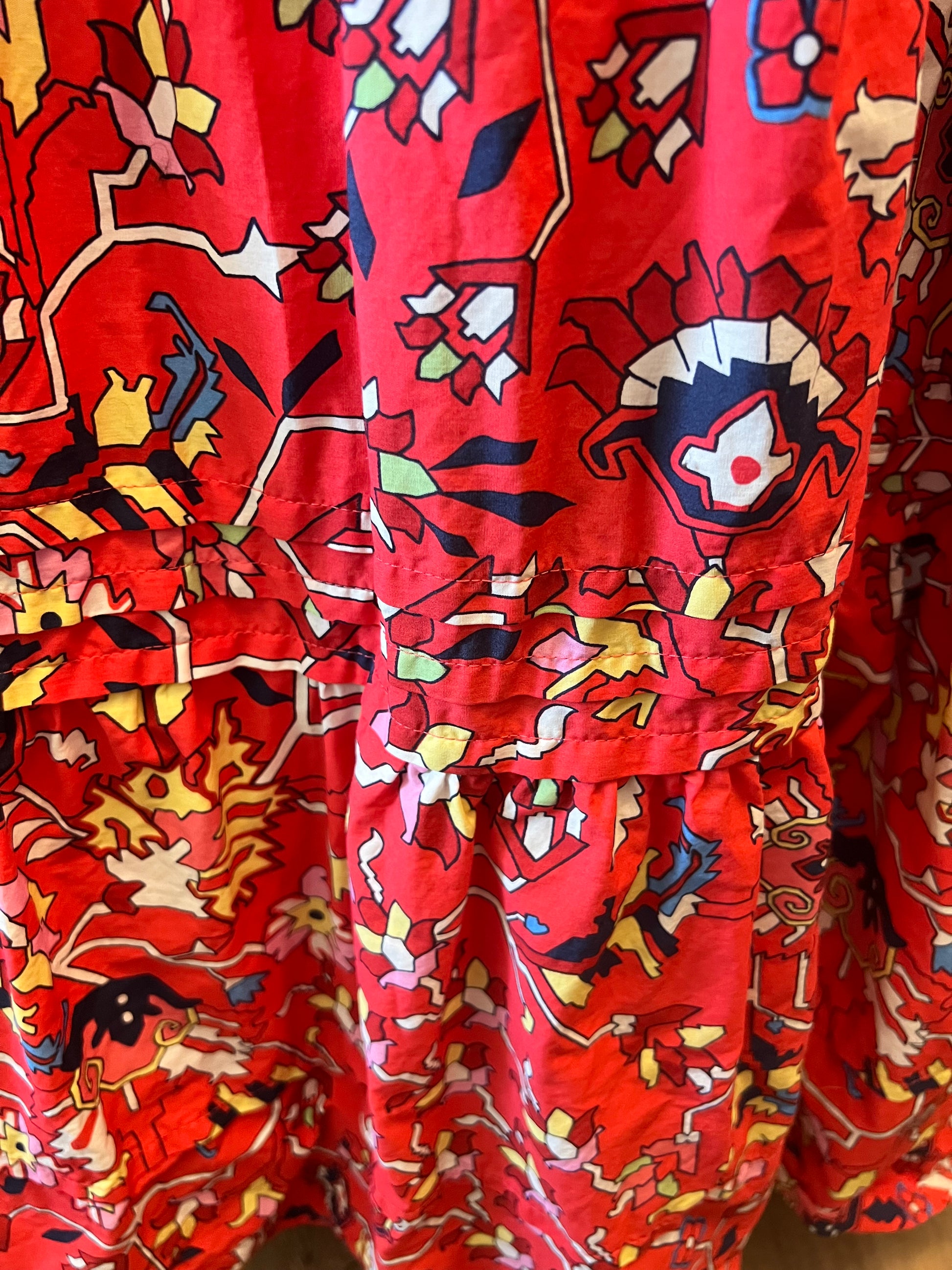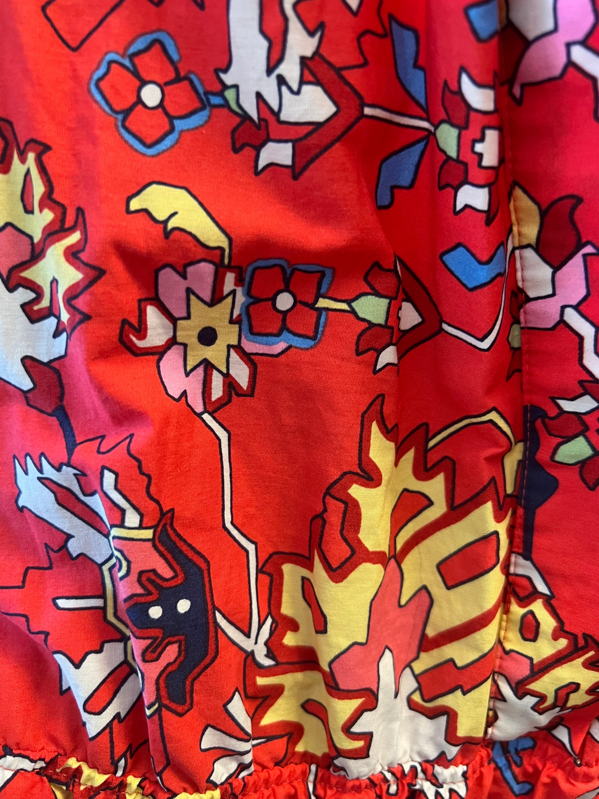This one is a coral color, in our opinion, although some have called it pink or red. It was worn one time and is in excellent condition. Floral pattern is so pretty. Size XL.