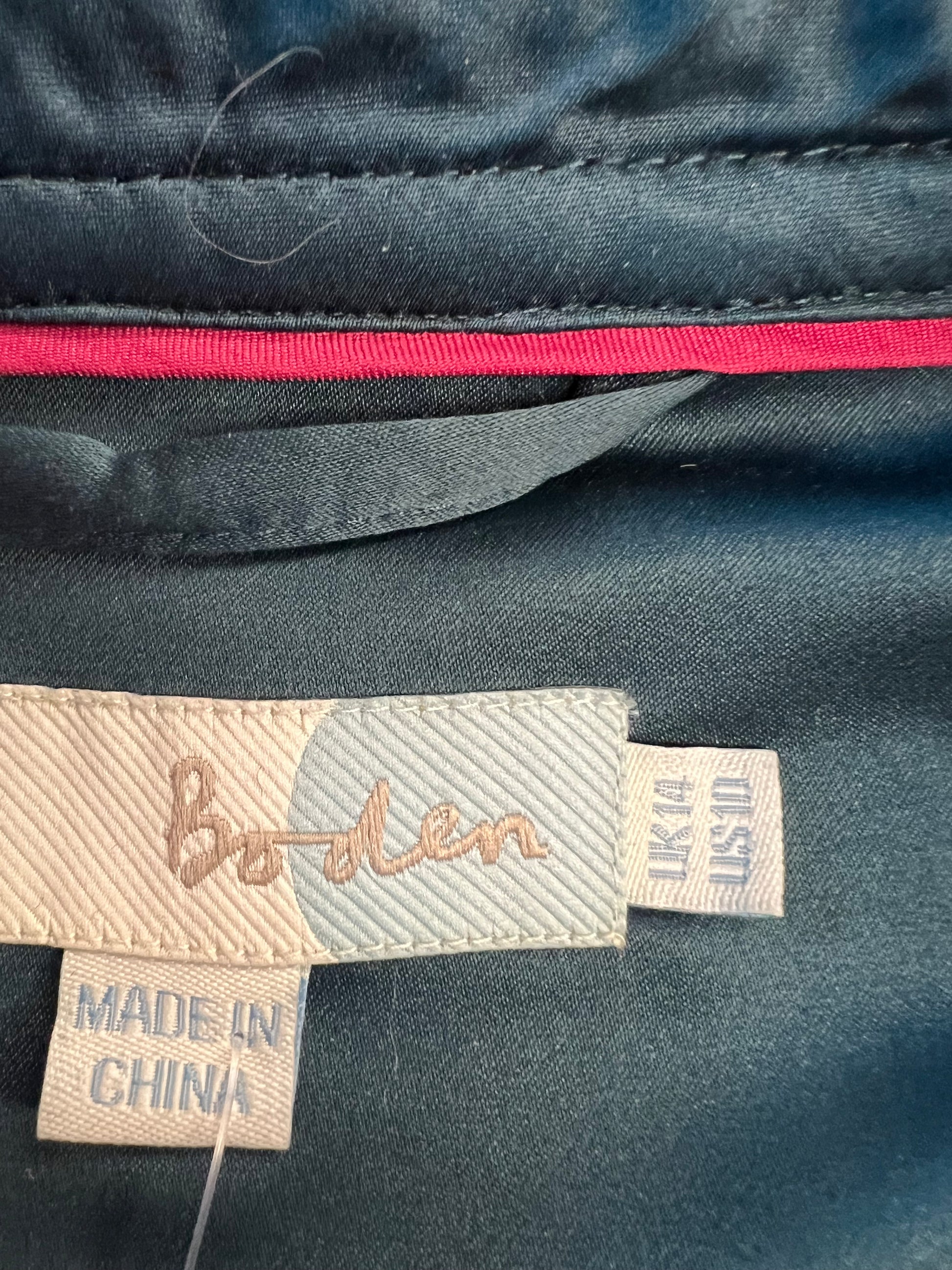 Perfect fall jacket! Fitted, waist-length gray coat from Boden. Buttons up the front. 100% wool. Two cute working front pockets. Lined in emerald green material with pink piping. Nicely structured and gives military vibes. Size 10.