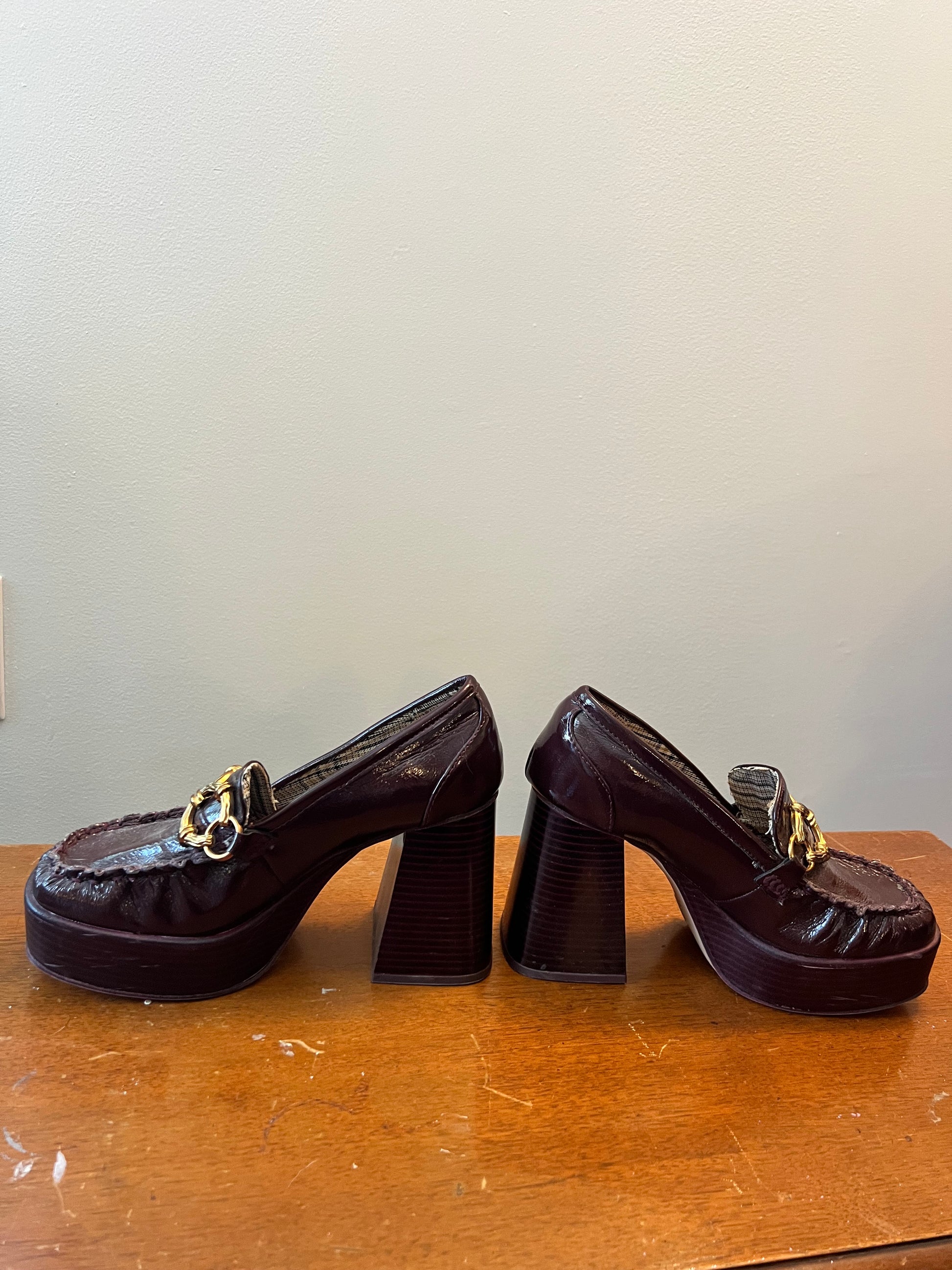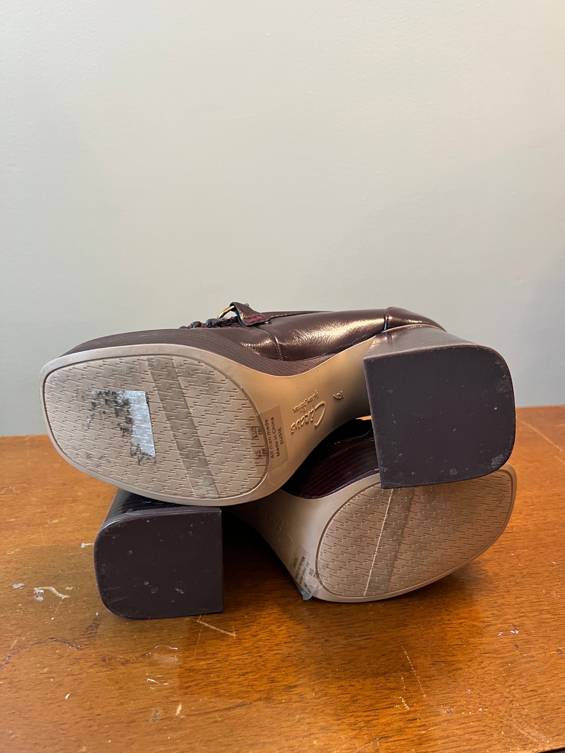 Barely worn, nearly new condition. Color is very dark burgundy.