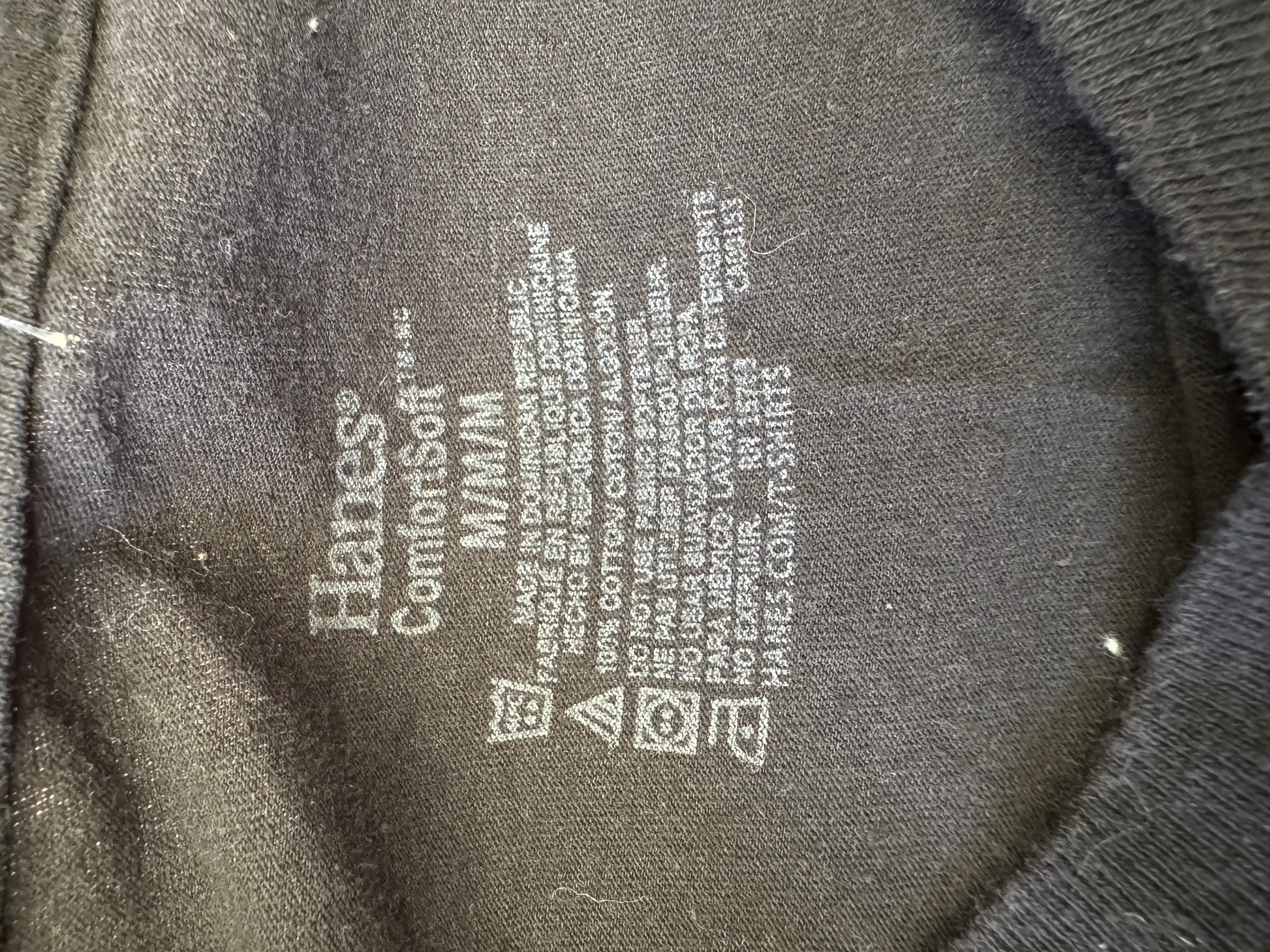 We don’t really know anything about the provenance of this t-shirt, but we do know it’s kinda…amazing? Whether you love Alice Cooper, or Jesus, or both, or neither…this shirt is a rare find and will make your mama proud. We believe this line of Hanes Comfort Soft tees were produced sometime around 1997-2012, and we think this was likely a limited run of possibly fan-produced merch, but please do your own research before buying.
