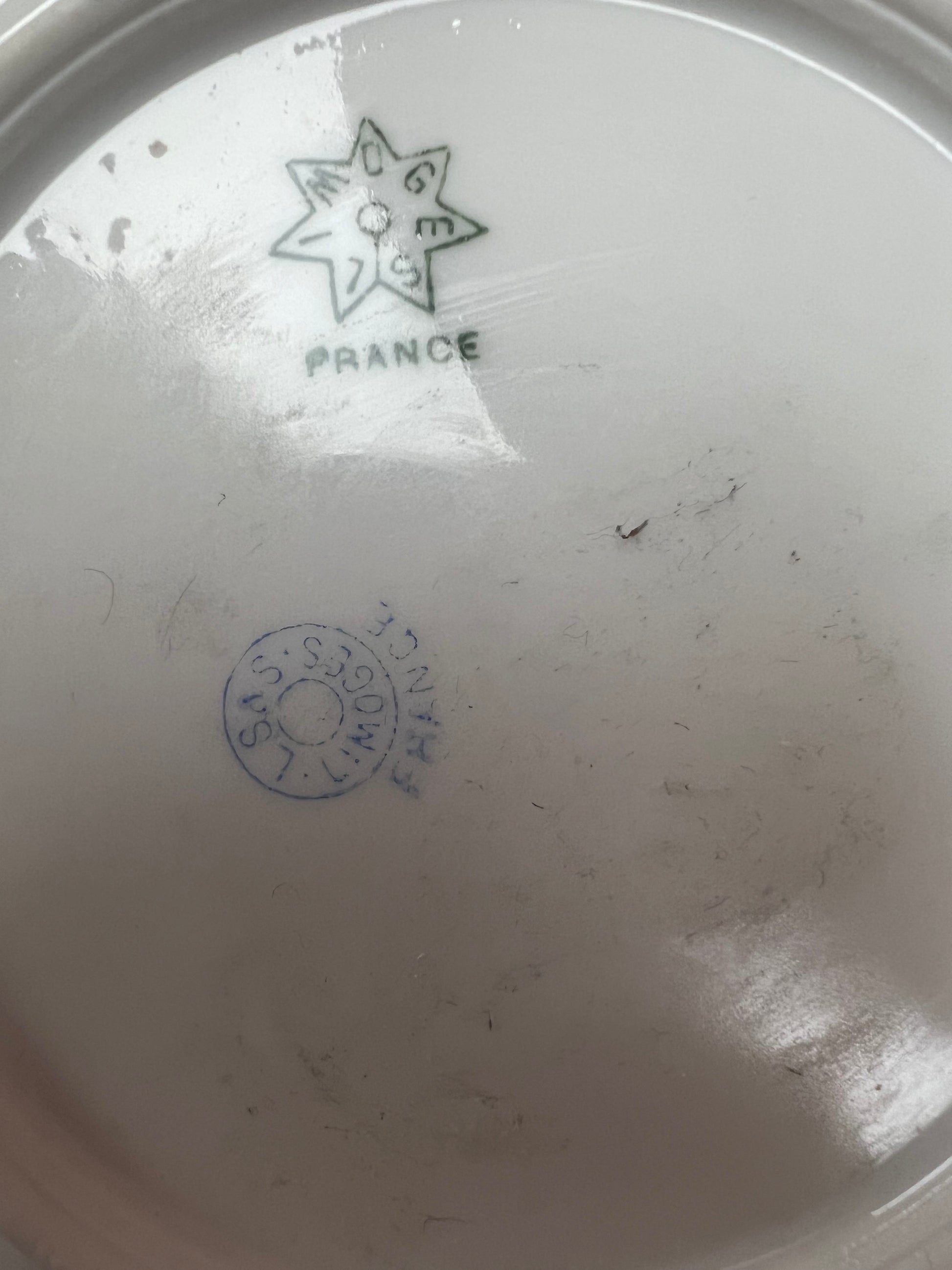 Super pretty little antique or vintage ring dish made by Limoges France. Fine porcelain in bright blue with intricate and elegant design in gold. Decorative plate with many uses. Approximately 5” across.