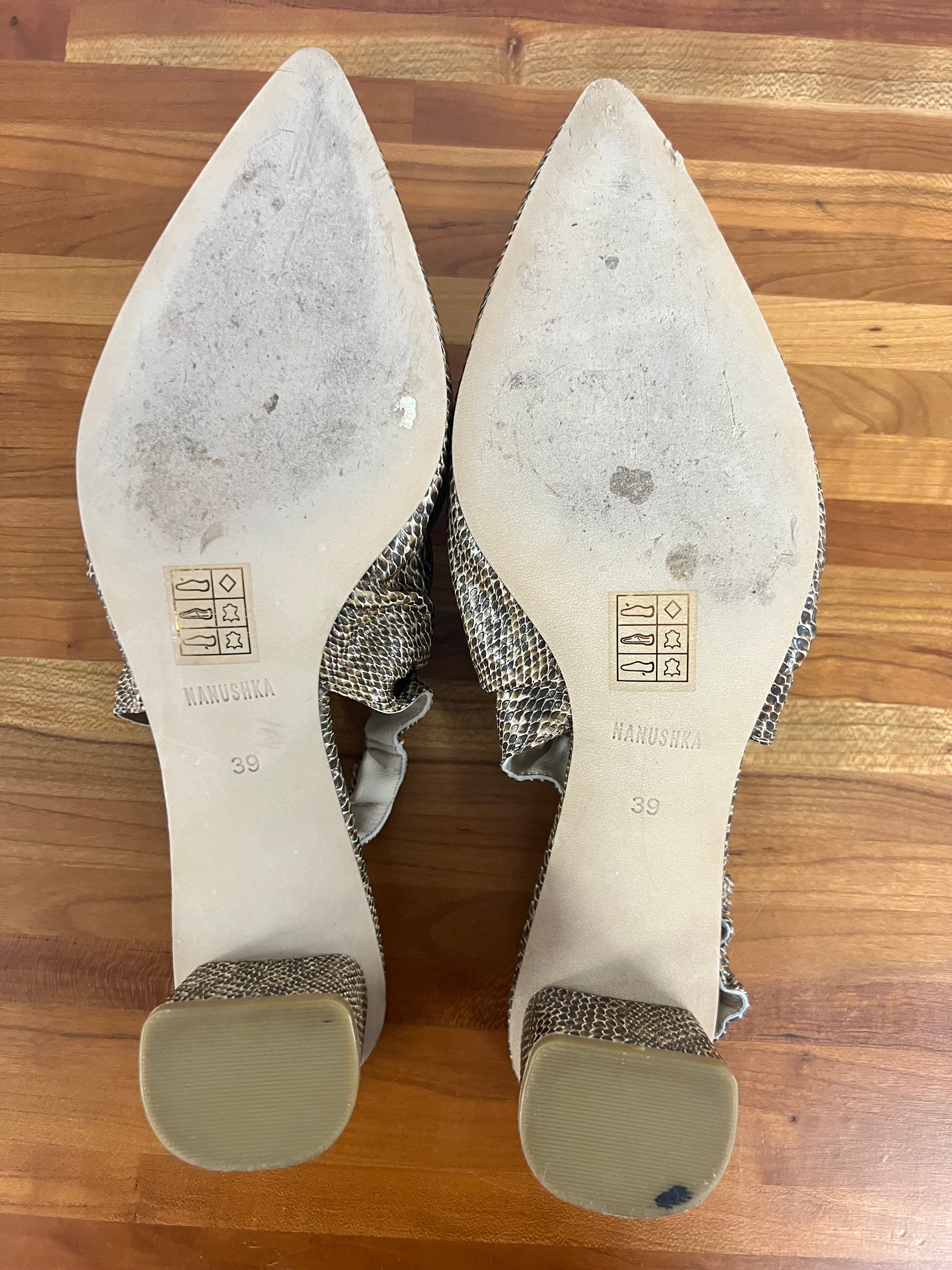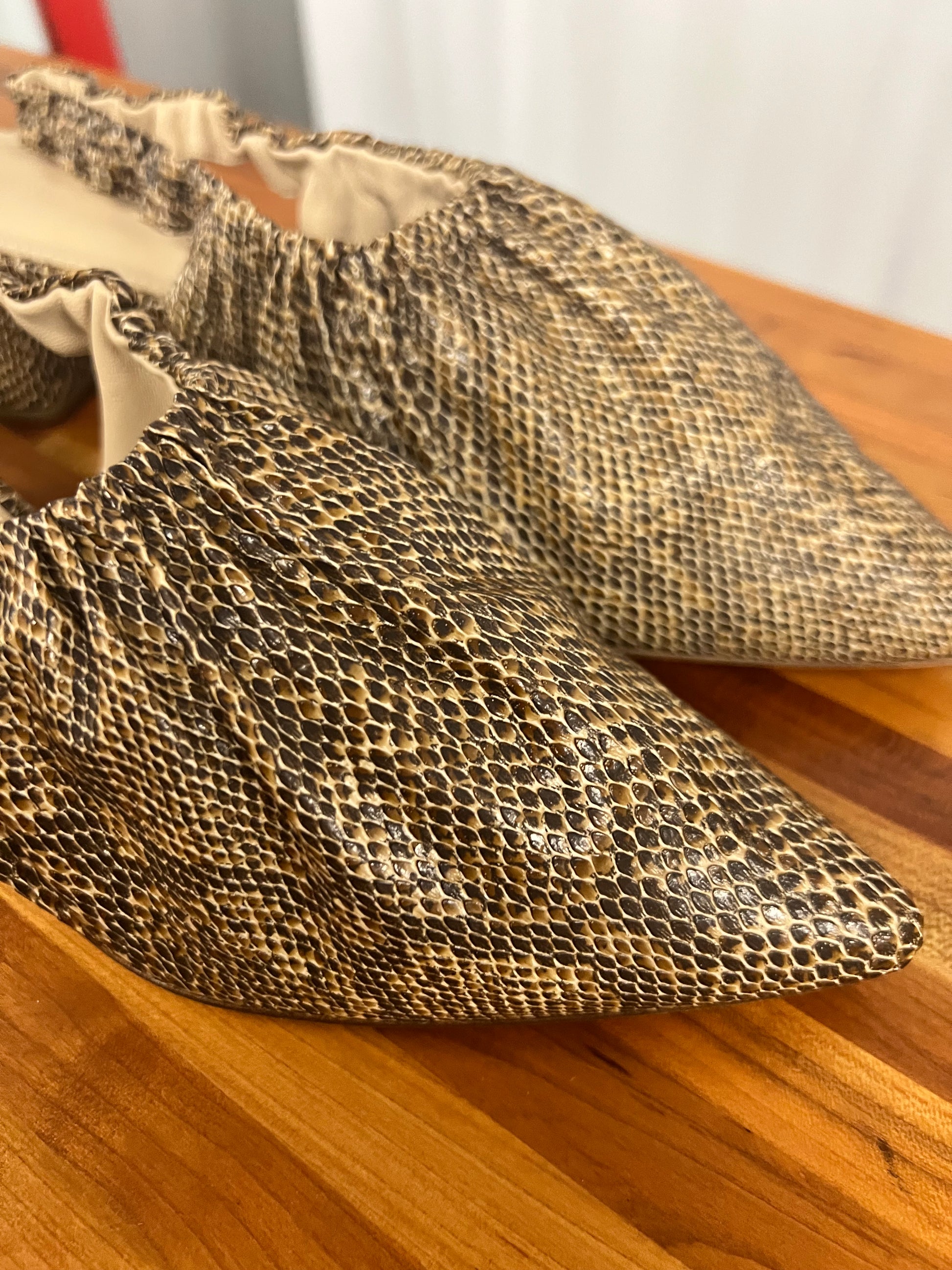 Python stretchy sling-back low heels by Nanushka. Includes dust bag. Leather. Size 39.