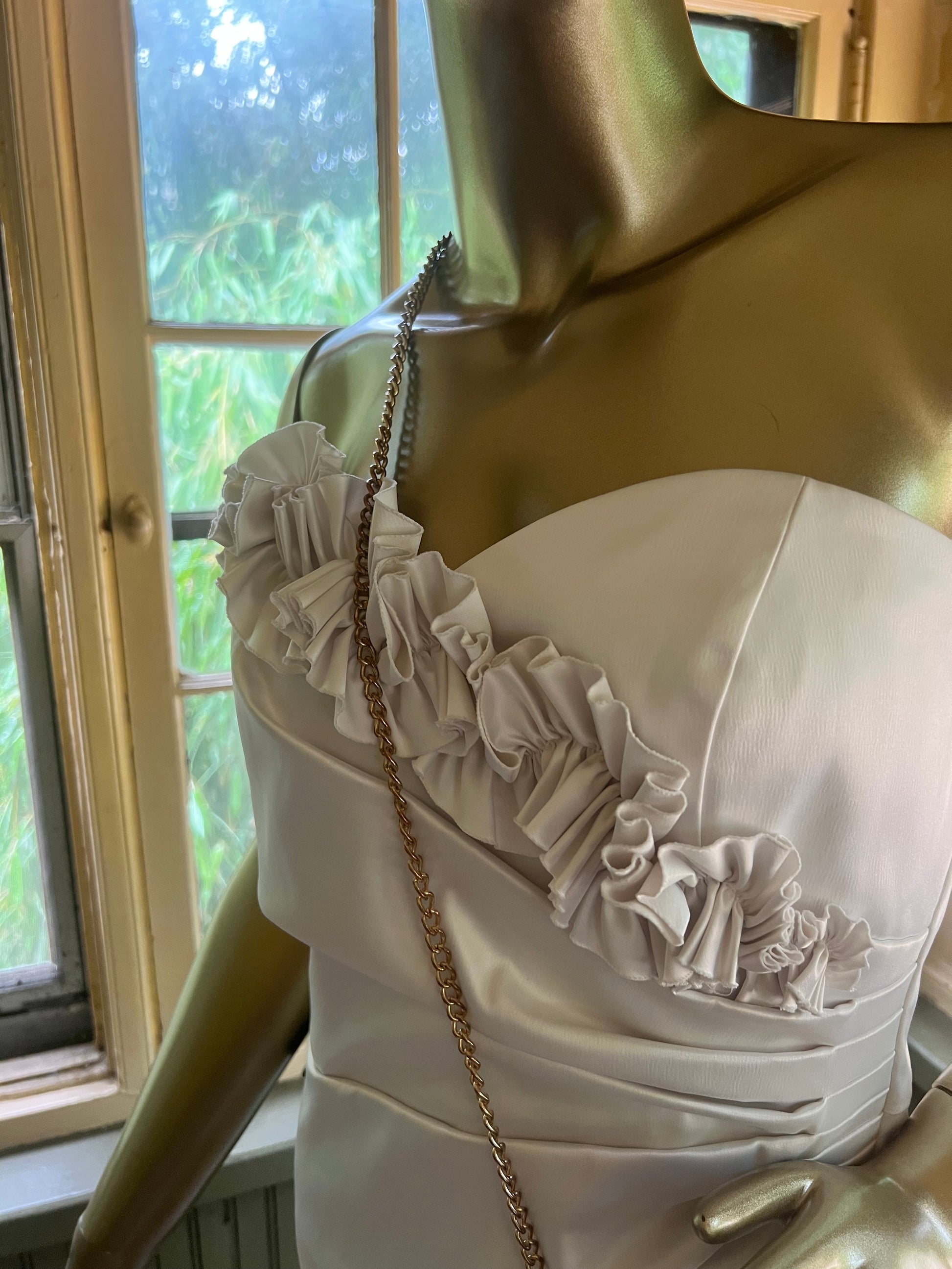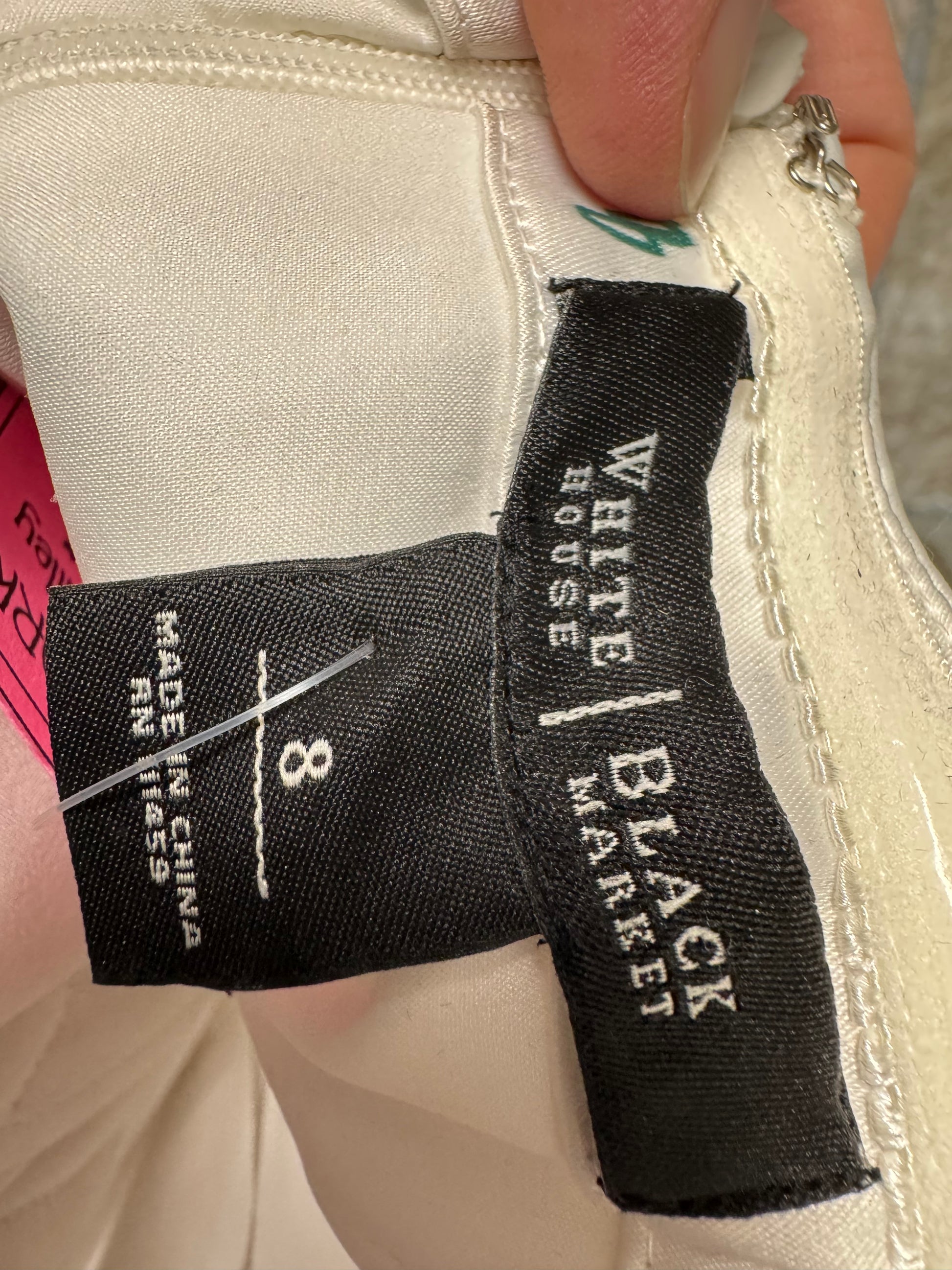 Brand new with tags, White House Black Market white dress. Strapless fitted mini with ruffle at the chest and side ruching. Zippers in back. Super flattering. Size 8.