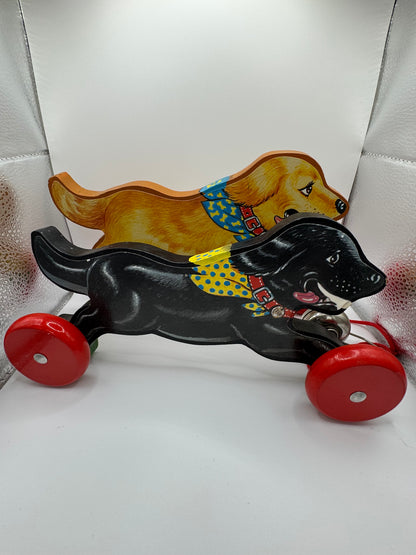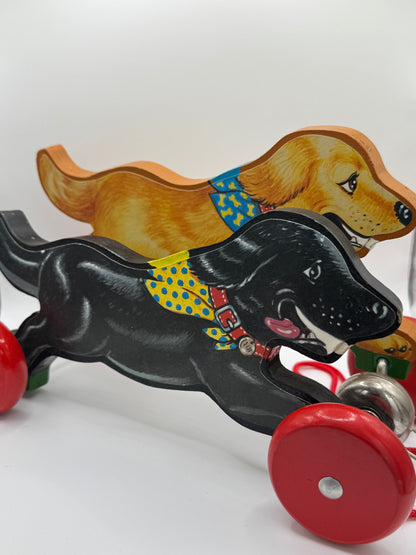 Super cute vintage two-dog pull-toy. Bell rings when you pull it. Works great!