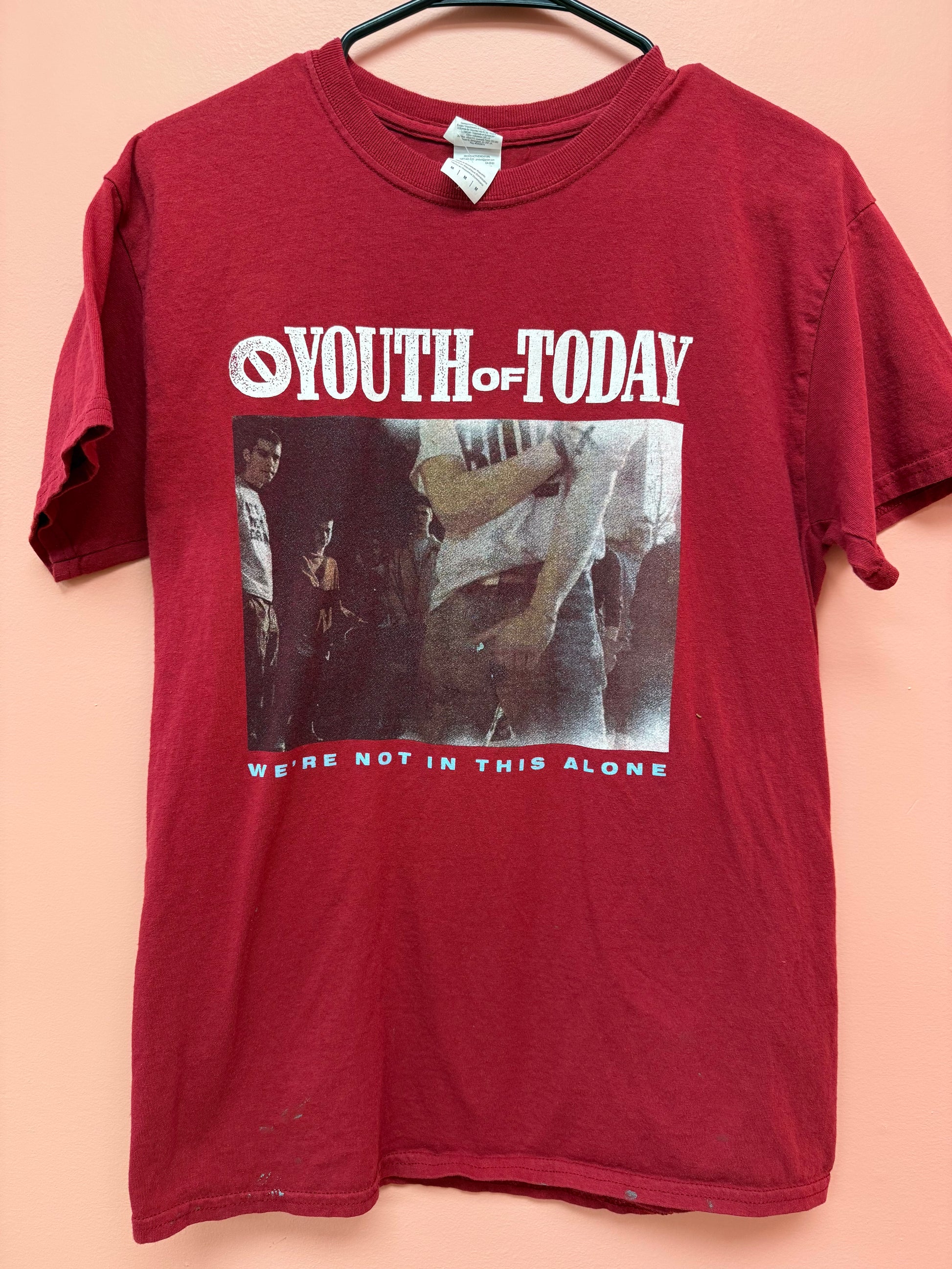 T-shirt. NY area hardcore punk band, Youth of Today. Seminal hardcore/punk/straight edge/vegetarian band. Active 80s, 90s, 2000s. Dark red. Size M.